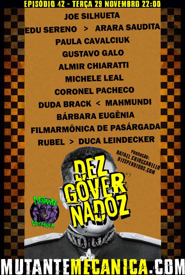 O Dezgovernadoz vai todo dia às 22 horas e de certa forma é uma loucura fazer a curadoria dele. Na mesma intensidade que é prazeroso também. Imaginem um programa que vai ao ar 5 vezes por semana e com programação completamente diferente desde seu dia 1. Nesta sexta-feira completamos 50 episódios e o carinho que temos recebido pelo programa é sem palavras. Acredito que já passamos nesse tempo de 1000 artistas diferentes do indie br.